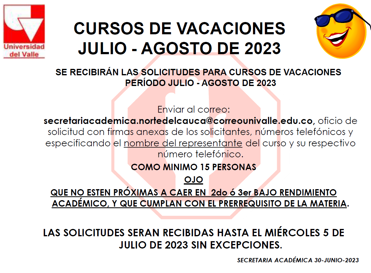 Inscripciones abiertas a los cursos de vacaciones sede Norte del Cauca periodo Enero/Febrero 2023